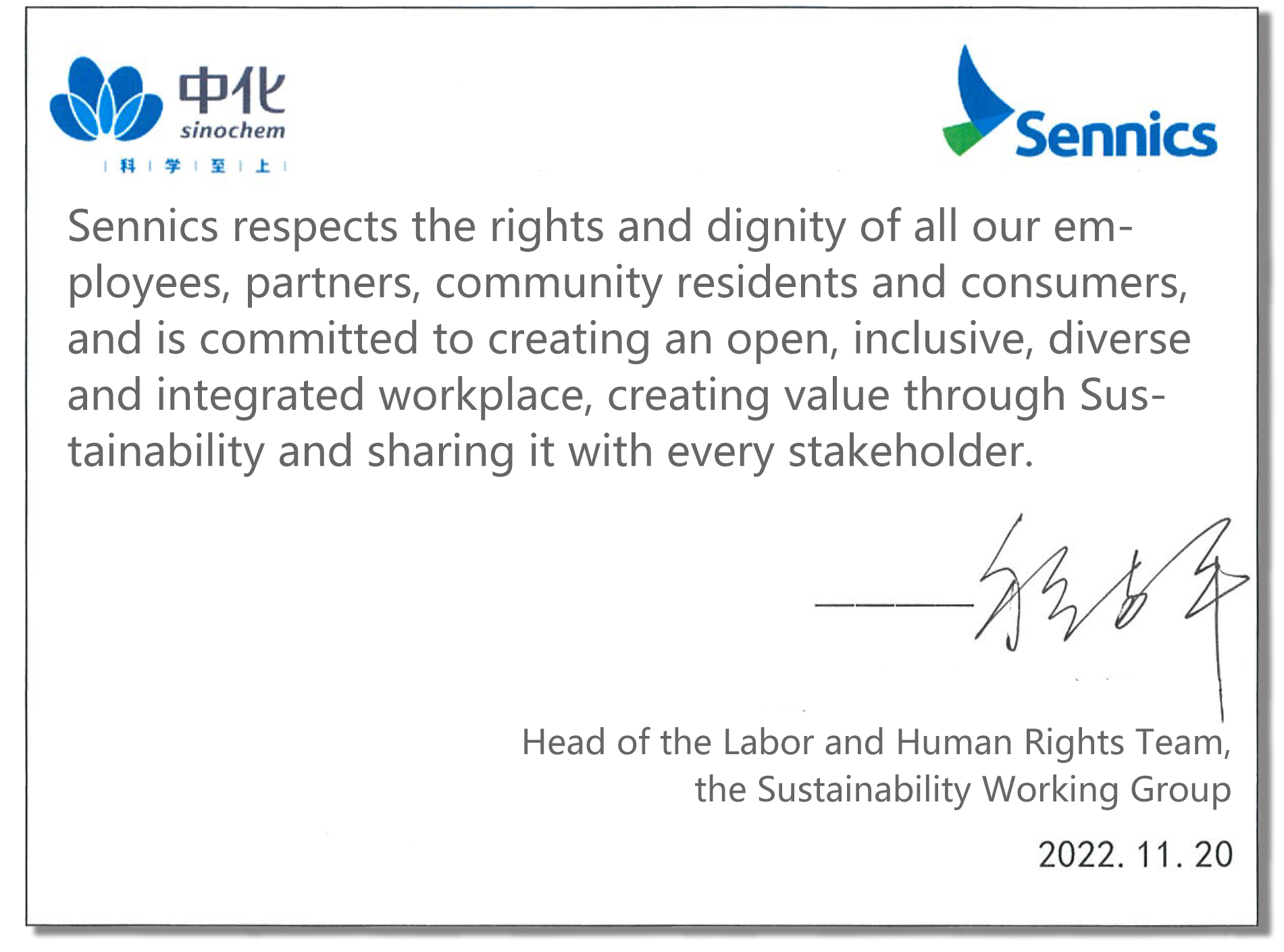 Sennics provides labor-management cooperation and respects employees' freedom of association and collective bargaining. The company has developed a democratic management system represented by the employees' congress, recognizes and respects the democratic management rights of the labor union, and guarantees employees' right to know, to express and to supervise. The company has built a regular communication and feedback mechanism for employees, learns their opinions through interviews and reviews, formulates management improvement measures, and improves management and employee satisfaction continuously. Employees are entitled to communicating openly with management about working conditions, management strategies, etc., and they do not need to worry about retaliation, intimidation or harassment.