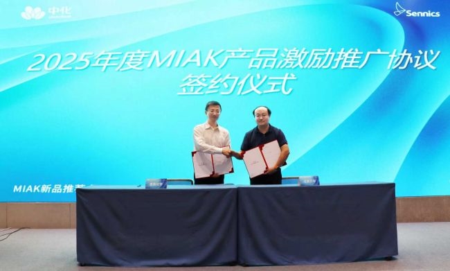 會上,圣奧化學副總裁、營銷中心主任黃輝與客戶代表共同簽署《2025年度MIAK產品激勵推廣協議》,將于2025年12月31日前,對MIAK產品提貨數量采取階梯式超額累進遞增激勵。
