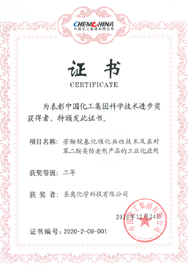 日前,圣奧化學(xué)“芳胺烷基化催化共性技術(shù)及在對苯二胺類防老劑產(chǎn)品的工業(yè)化應(yīng)用”項(xiàng)目榮獲2020年度中國化工集團(tuán)科技進(jìn)步獎二等獎。