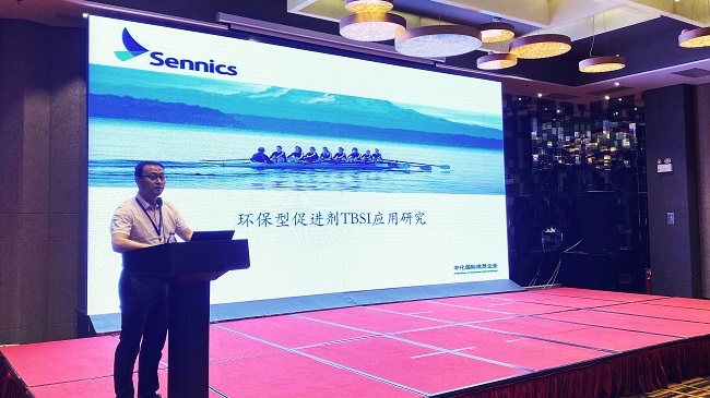 研討會期間,共29位行業(yè)領先企業(yè)代表和專家在大會作報告,內容涵蓋橡膠助劑市場分析、橡膠助劑清潔生產工藝、新型助劑和環(huán)保型橡膠助劑的研發(fā)和應用、先進橡膠助劑分析和測試方法等。圣奧化學李輝作《環(huán)保型促進劑TBSI應用研究》報告,向與會嘉賓介紹了公司對新型環(huán)保促進劑TBSI的應用研究情況。