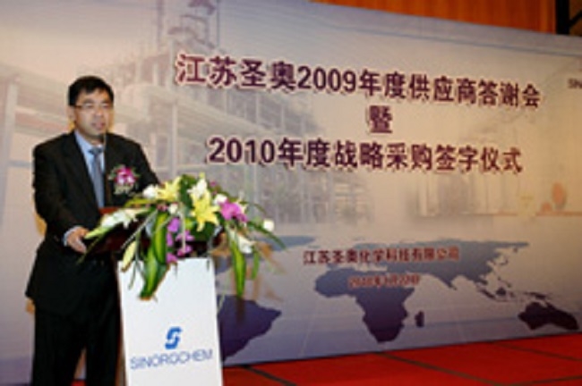 (2010年1月22日,上海)上午9點(diǎn),江蘇圣奧化學(xué)科技有限公司2009年度供應(yīng)商答謝會暨2010年度戰(zhàn)略采購簽字儀式在浦東淳大萬麗酒店成功召開。江蘇圣奧首席營運(yùn)官兼首席財務(wù)官蔡崢琦先生及部分高層領(lǐng)導(dǎo)與來自全國各地的近20家供應(yīng)商代表出席了此次活動。江蘇圣奧召開此次會議旨在構(gòu)建戰(zhàn)略合作的供應(yīng)體系,和供應(yīng)商建立更為緊密的上下游關(guān)系,從而為客戶提供更穩(wěn)定的供貨和更及時的服務(wù),以期成為全球橡膠助劑用戶的最優(yōu)選擇。本次會議的召開也標(biāo)志著江蘇圣奧在走向國際化的進(jìn)程中又邁進(jìn)了一步。