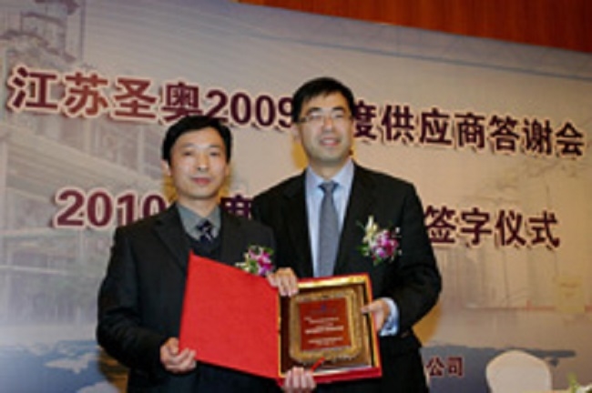 在各位領(lǐng)導(dǎo)精彩的致辭結(jié)束之后,大會還專門為2009年度優(yōu)秀戰(zhàn)略合作伙伴和供應(yīng)商舉行了隆重的頒獎儀式,共頒發(fā)了包括“2009年度優(yōu)秀供應(yīng)商”在內(nèi)的7個獎項(xiàng),對那些在提高產(chǎn)品質(zhì)量及效率等方面有著突出貢獻(xiàn)的供應(yīng)商予以肯定。在隨后舉行的2010年度戰(zhàn)略采購簽字儀式上,蔡崢琦先生代表江蘇圣奧與3家供應(yīng)商簽約,并表示各方將在供應(yīng)鏈管理、技術(shù)創(chuàng)新等各個領(lǐng)域進(jìn)行戰(zhàn)略合作。江蘇圣奧將在協(xié)議確定的框架內(nèi),積極推進(jìn)與供應(yīng)商們的深化合作,互動促進(jìn),在廣泛的交流合作中,實(shí)現(xiàn)雙方的優(yōu)勢互補(bǔ)、互相促進(jìn)、共榮共贏,為雙方的發(fā)展開辟廣闊的前景。
