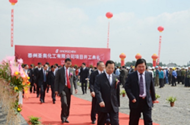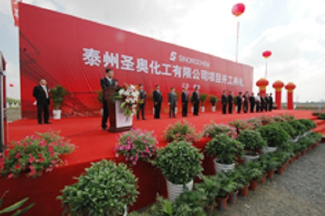 (2011年5月27日,泰州)全球最大的橡膠防老化劑供應(yīng)商江蘇圣奧化學(xué)科技有限公司(以下簡稱“江蘇圣奧”)在泰州市濱江工業(yè)園舉行了下屬第五家子公司泰州圣奧化工有限公司(以下簡稱“泰州圣奧”)的開工奠基典禮。中國橡膠工業(yè)協(xié)會會長范仁德、泰州市市委書記張雷、泰州市市長徐郭平、南京工業(yè)大學(xué)副校長劉偉慶等來自行業(yè)協(xié)會、地方政府及客戶、供應(yīng)商等嘉賓以及凱雷投資集團(tuán)董事總經(jīng)理、江蘇圣奧副董事長羅一、江蘇圣奧首席執(zhí)行官兼首席財務(wù)官蔡崢琦等公司高層出席了本次開工典禮。