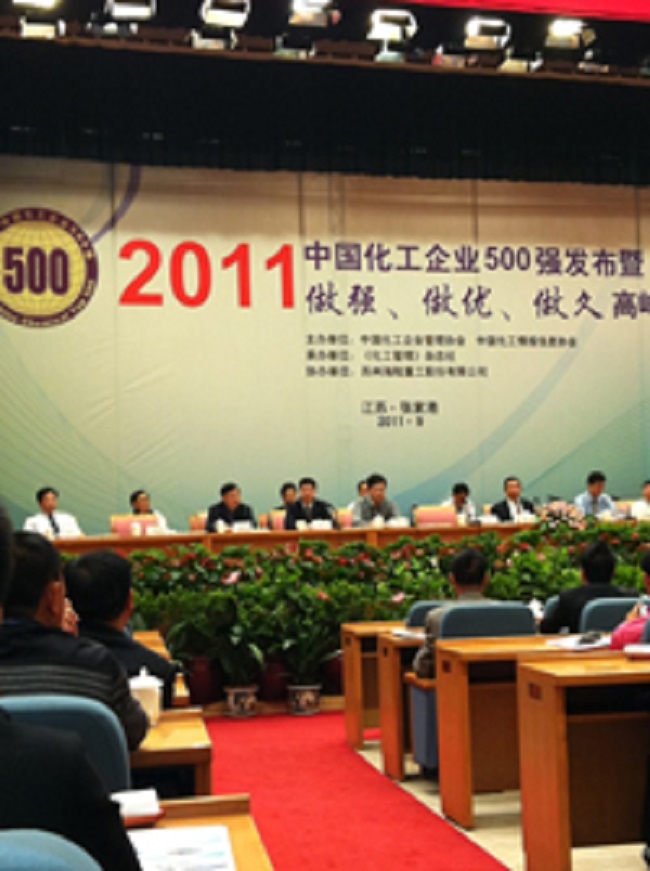 2011中國化工企業(yè)500強發(fā)布會暨“做強、做優(yōu)、做久高峰論壇”于張家港隆重召開。參加此次論壇交流的有化工行業(yè)的領(lǐng)導(dǎo),學(xué)術(shù)專家及晉級化工企業(yè)500強的代表,會議由中國化工企業(yè)管理協(xié)會會長王印海主持。江蘇圣奧又一次獲得中國化工企業(yè)500強的殊榮!每年一度的化工500強發(fā)布會已經(jīng)連續(xù)召開了9年,成為化工企業(yè)界和社會相關(guān)人士共同關(guān)注的話題。發(fā)布化工企業(yè)500強排行榜、上市公司百強企業(yè)以及最具成長力的化工企業(yè)等不但展現(xiàn)了我國化工企業(yè)的綜合實力,也體現(xiàn)了我國化工企業(yè)競爭力的不斷提升。