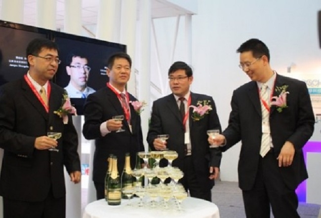 圖:香檳祝酒,開幕式上,公司領導層預祝本次展會舉辦成功。