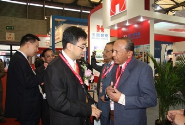 圖:會展期間,公司CEO蔡錚琦與印度客人正在進行工作交流。