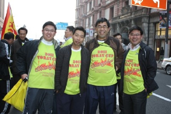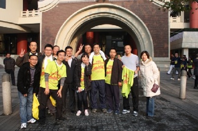 2011年12月4日6時(shí)半,在大多數(shù)人還在熟睡的冬日清晨,由Stephen率領(lǐng)的江蘇圣奧4.5公里健康跑團(tuán)隊(duì)共12人,提前走上“2011東麗杯上海國際馬拉松賽”跑道為比賽作熱身。他們和其他參賽選手一起,將現(xiàn)場(chǎng)變成馬拉松愛好者歡樂的海洋。本次比賽路線從中山東一路外灘陳毅廣場(chǎng)為起點(diǎn)起跑,途經(jīng)南京東路、南京西路,最終到達(dá)上海展覽中心,我們的隊(duì)員要在7:30~8:30這一個(gè)小時(shí)的時(shí)間內(nèi)完成長達(dá)4.5公里路程的馬拉松。