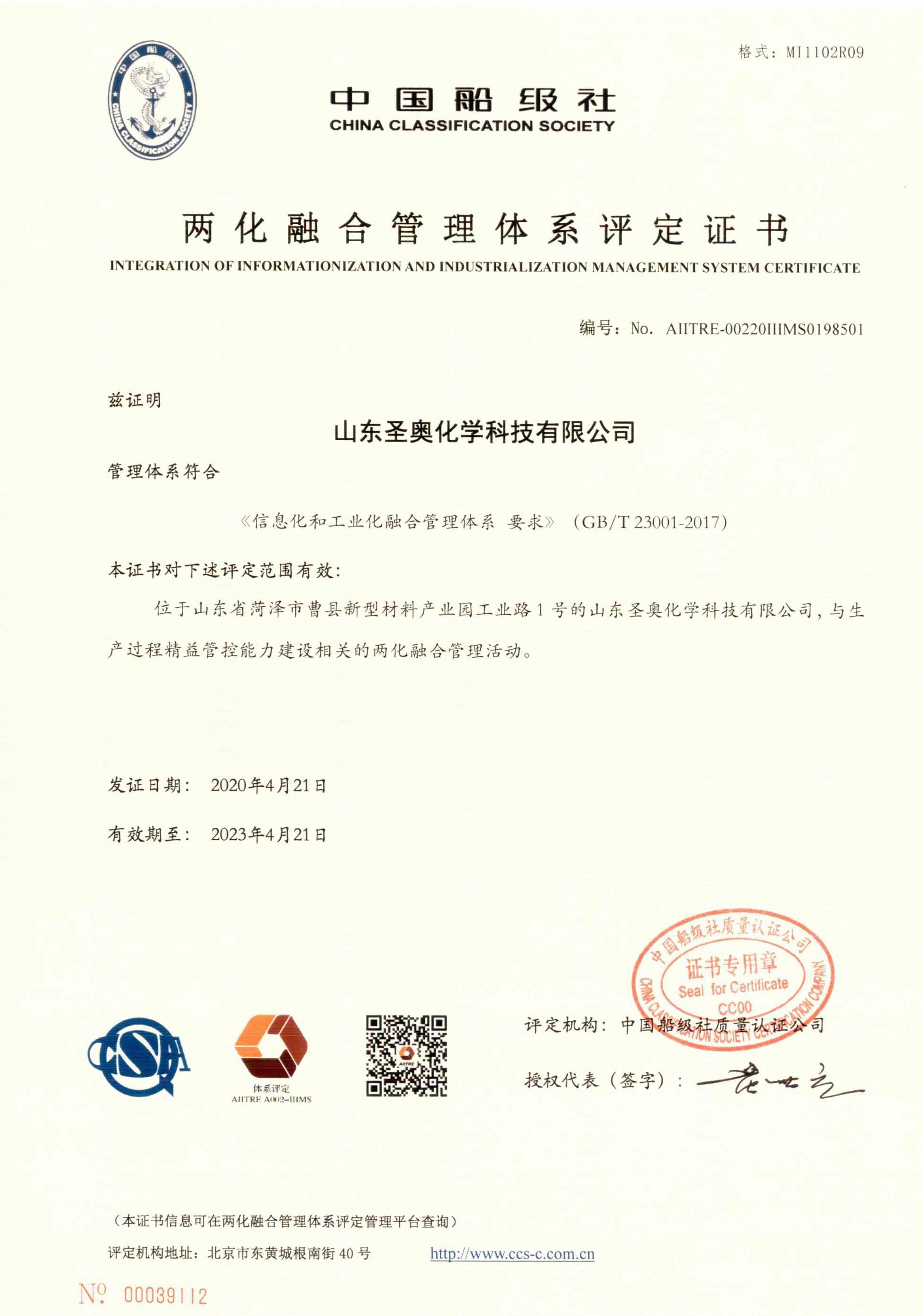 4月21日,山東圣奧正式通過國家工業(yè)和信息化部《信息化和工業(yè)化融合管理體系要求》(GB/T 23001-2017)體系認證,標志著山東圣奧在推進信息化和工業(yè)化深度融合方面進入新階段,這是繼安徽圣奧2018年9月入選之后,圣奧化學(xué)旗下第二家子公司成功通過國家兩化融合管理體系認證。