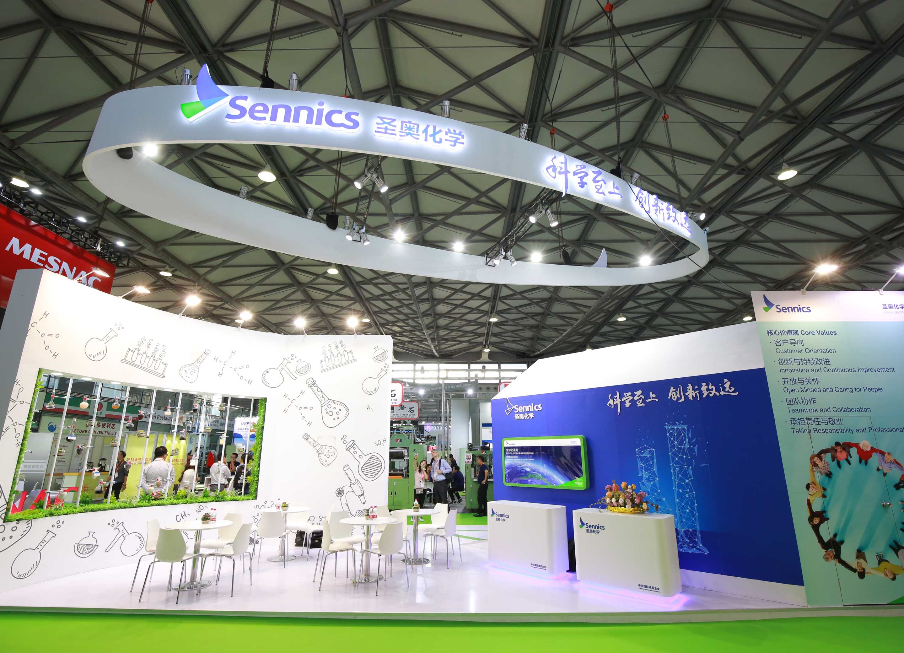 本次展覽中,圣奧化學(xué)秉承一貫開放、別致的風(fēng)格,展臺(tái)設(shè)計(jì)以“奇妙的圣奧實(shí)驗(yàn)室”為主題,采用了大量妙趣橫生的化學(xué)符號(hào),并融合了綠色、燒瓶、植物等元素,充分展現(xiàn)了在當(dāng)前國(guó)際經(jīng)濟(jì)形勢(shì)日益嚴(yán)峻的背景下,公司緊緊圍繞中化集團(tuán)“全面轉(zhuǎn)型為科學(xué)技術(shù)驅(qū)動(dòng)的創(chuàng)新型公司”的發(fā)展戰(zhàn)略,以科技領(lǐng)先、清潔環(huán)保為方向,在研發(fā)應(yīng)用、工藝技術(shù)等方面不斷創(chuàng)新,從源頭上研發(fā)安全環(huán)保、環(huán)境友好的本質(zhì)綠色產(chǎn)品,不斷踐行科學(xué)至上核心價(jià)值理念,同時(shí),也體現(xiàn)了公司攜手行業(yè)伙伴一起打造綠色供應(yīng)鏈,共同推動(dòng)整個(gè)行業(yè)的綠色可持續(xù)發(fā)展,更好地滿足客戶需求和社會(huì)期待的堅(jiān)定決心。