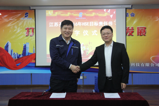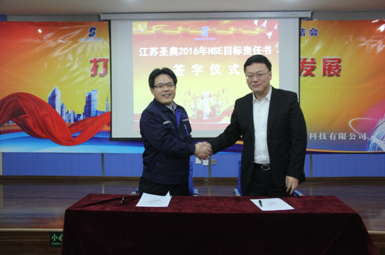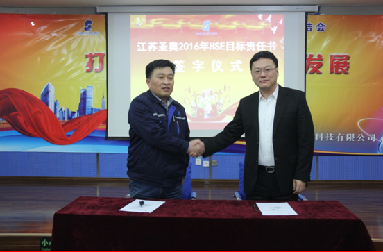 江蘇圣奧2016年度HSE目標(biāo)責(zé)任書,內(nèi)容涉及到生產(chǎn)、安全、環(huán)保和企業(yè)文化等多個(gè)方面。責(zé)任書明確了下屬子公司各項(xiàng)工作指標(biāo),強(qiáng)化了責(zé)任主體意識(shí),為江蘇圣奧在2016年的HSE管理工作目標(biāo)順利達(dá)成打下基礎(chǔ)。同時(shí),《2016年HSE目標(biāo)責(zé)任書》的簽訂,也表明了江蘇圣奧一如既往的重視生產(chǎn)安全、員工安全、社會(huì)安全,這不單是對(duì)企業(yè)發(fā)展的重視、對(duì)員工生命的關(guān)懷,也是對(duì)全社會(huì)綠色可持續(xù)發(fā)展所承擔(dān)的責(zé)任。