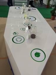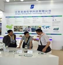 本次展會中,江蘇圣奧的展臺繼承了一貫的藍白色調(diào)風(fēng)格,以“成就綠色里程”為主題,通過豐富的展板內(nèi)容宣傳綠色環(huán)保和可持續(xù)發(fā)展理念,展出產(chǎn)品中包含主打產(chǎn)品——防老劑6PPD、IPPD、S-TMQ以及不溶性硫黃、促進劑TBSI和中間體RT培司等,吸引了國內(nèi)外專業(yè)客戶前來咨詢。為了增強與觀眾的互動性,本次展會還特別增加了極品賽車小游戲供觀眾參與。