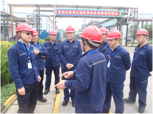 根據(jù)中國(guó)中化集團(tuán)公司的統(tǒng)一安排,6月25日至26日,中化集團(tuán)第十五檢查組在中化化肥公司總經(jīng)理王紅軍的帶領(lǐng)下對(duì)江蘇圣奧下屬泰安圣奧工廠進(jìn)行了為期兩天的安全生產(chǎn)大檢查,中化國(guó)際HSE總監(jiān)方國(guó)鈺、江蘇圣奧CEO蘇賦和泰安圣奧總經(jīng)理石松等陪同檢查。