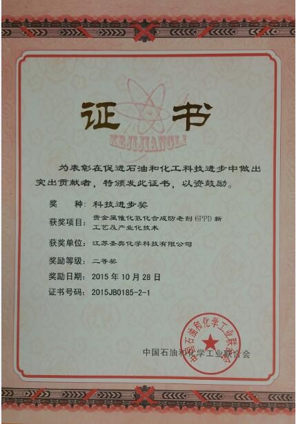 11月18日,全國石油和化工科技創(chuàng)新大會(huì)在北京人民大會(huì)堂新聞發(fā)布廳召開,原十屆全國人大常委會(huì)副委員長顧秀蓮、中國石油和化學(xué)工業(yè)聯(lián)合會(huì)會(huì)長李壽生、名譽(yù)會(huì)長李勇武等領(lǐng)導(dǎo)出席會(huì)議。江蘇圣奧的“貴金屬催化氫化合成防老劑6PPD新工藝及產(chǎn)業(yè)化技術(shù)”項(xiàng)目榮獲科技進(jìn)步二等獎(jiǎng)。