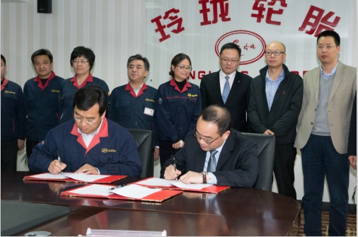 圖為中化國際常務(wù)副總經(jīng)理覃衡德與玲瓏輪胎董事長王鋒簽署戰(zhàn)略合作協(xié)議