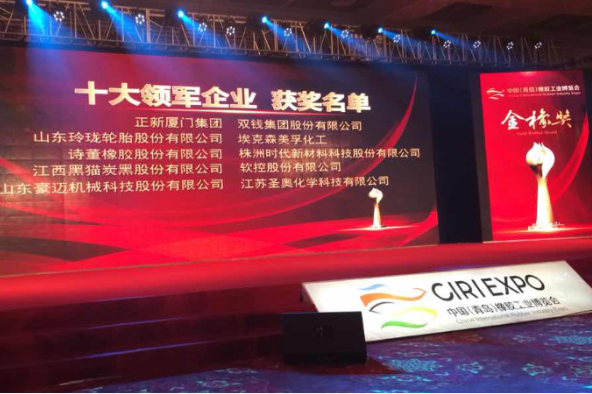 2014年10月15日,由中國石油和化學(xué)工業(yè)聯(lián)合會(huì)、中國橡膠工業(yè)協(xié)會(huì)等聯(lián)合主辦的化工橡膠行業(yè)首個(gè)“奧斯卡”大獎(jiǎng)—— “金橡獎(jiǎng)”頒獎(jiǎng)盛典在青島隆重舉行,來自輪胎、膠管膠帶、橡膠機(jī)械、化工以及原材料等眾多化工橡膠行業(yè)的知名企業(yè)和代表參加了本次盛會(huì),江蘇圣奧榮膺“領(lǐng)軍企業(yè)獎(jiǎng)”,是橡膠化學(xué)品行業(yè)唯一一家獲此殊榮的企業(yè)。
