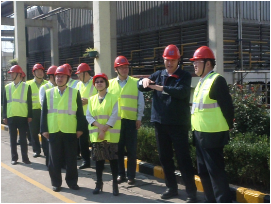 圖為中化集團(tuán)副總裁李彬一行在江蘇圣奧管理層的陪同下實(shí)地調(diào)研銅陵工廠