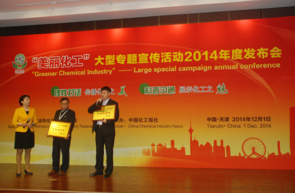 2014年11月30—12月1日,由中國(guó)石油和化學(xué)工業(yè)聯(lián)合會(huì)主辦、中國(guó)化工報(bào)社承辦的 “新常態(tài)、新動(dòng)力、新格局”中國(guó)石油和化工行業(yè)高峰論壇暨《中國(guó)化工報(bào)》理事會(huì)第十次年會(huì)在海河之畔天津舉行,與此同時(shí),2014年度美麗化工“石油和化工——企業(yè)公民楷模榜”也正式揭曉,江蘇圣奧在眾多參評(píng)企業(yè)中脫穎而出,榮獲“節(jié)能減排獎(jiǎng)”。
