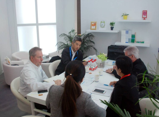 圖為我司銷售人員與美國輪胎客戶交流
