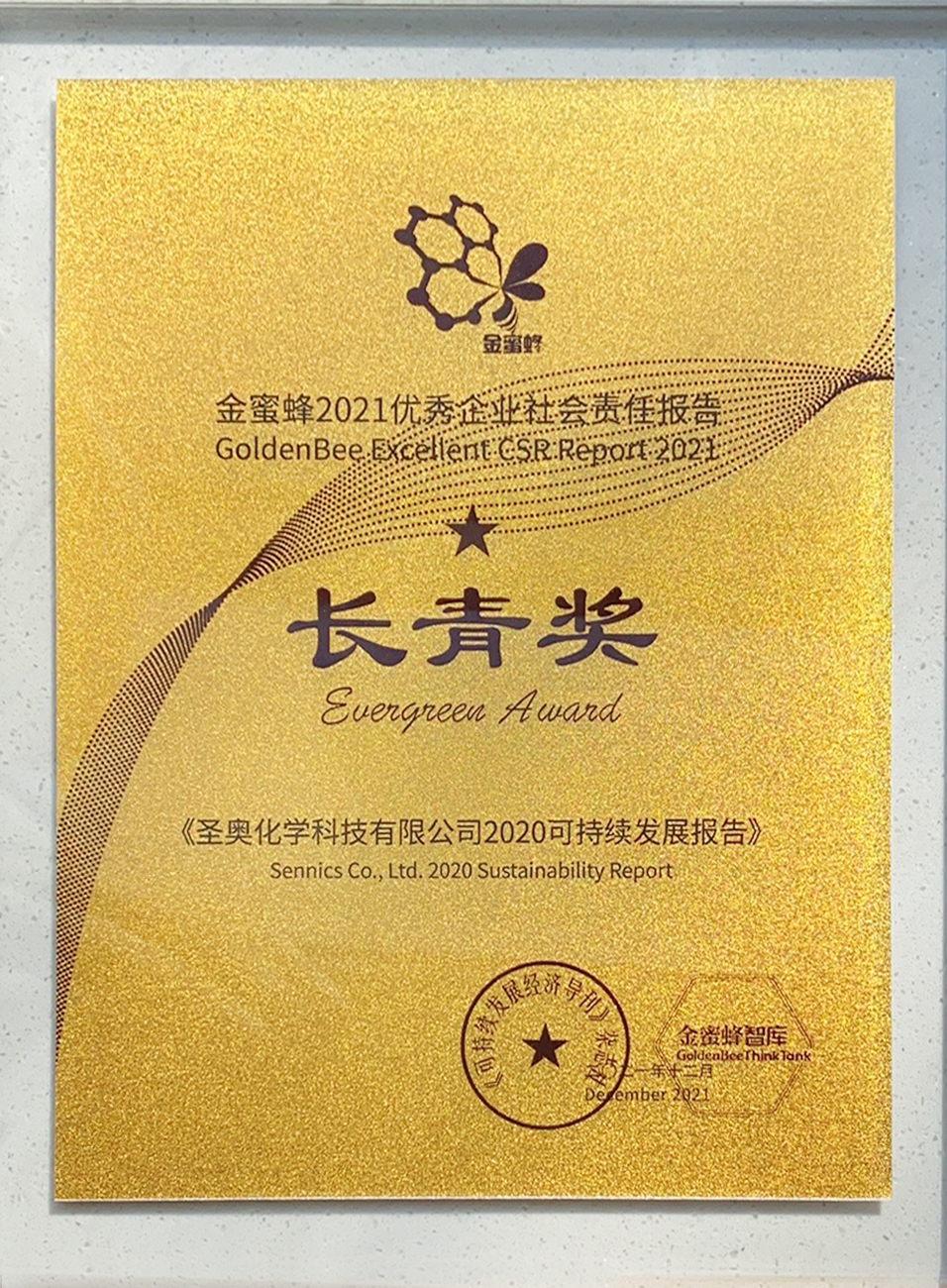 12月3日,第十四屆中國(guó)企業(yè)社會(huì)責(zé)任報(bào)告國(guó)際研討會(huì)在線上舉行,會(huì)議發(fā)布“金蜜蜂2021優(yōu)秀企業(yè)社會(huì)責(zé)任報(bào)告榜”,《圣奧化學(xué)2020可持續(xù)發(fā)展報(bào)告》第四次入圍,并憑借在可持續(xù)發(fā)展方面的卓越成果,榮獲“金蜜蜂2021優(yōu)秀企業(yè)社會(huì)責(zé)任報(bào)告? 長(zhǎng)青獎(jiǎng)一星級(jí)”稱號(hào)。