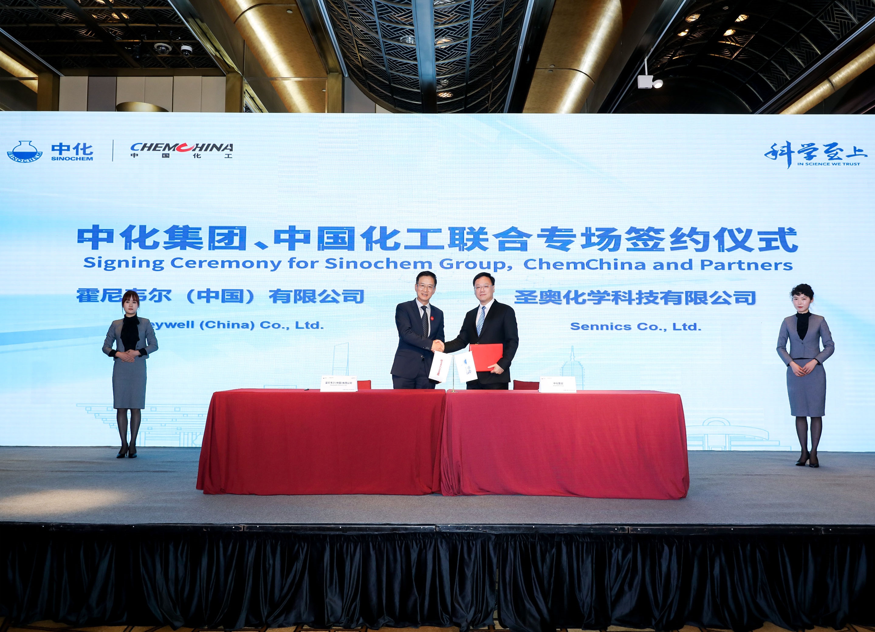 On November 5, during the third China International Import Expo (CIIE) in Shanghai, Sinochem Group Co., Ltd. ("Sinochem Group") and China National Chemical Corporation ("ChemChina)") jointly held a special signing ceremony, during which Sennics signed a letter of intent with Honeywell for cooperation on digital transformation. The signing of the letter of intent aims to further deepen the strategic partnership between the two companies and facilitate each other's effort to build a benchmark of "enabling the transformation of global fine chemical enterprises with digital technologies".