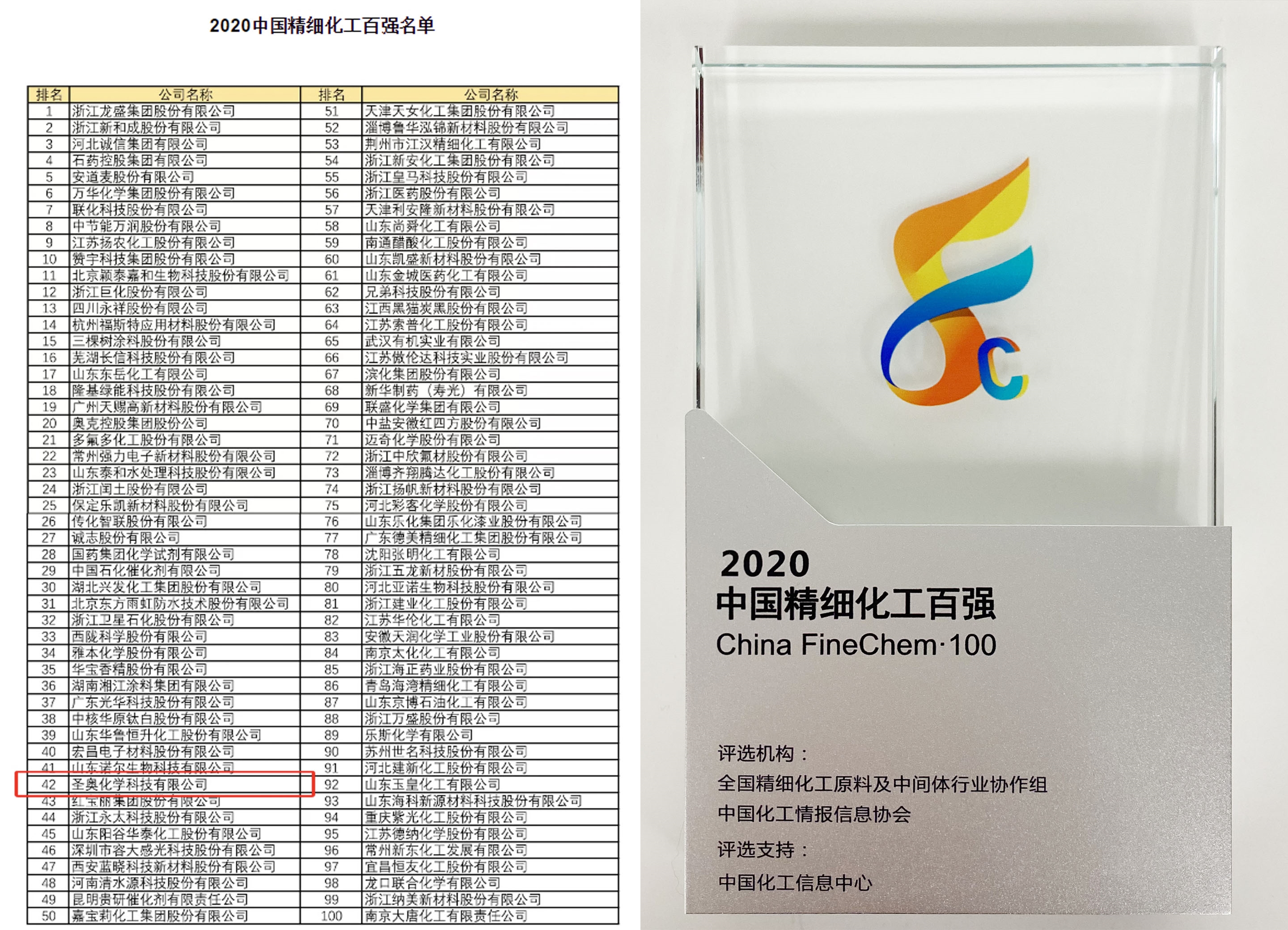 Sennics made the list of China's Top 100 Fine Chemical Companies in 2020 for the third time, ranking 42nd on the list, 2 spots higher than in 2019. As a fine chemical company focusing on polymer additives, Sennics takes innovation as its core competitiveness, continuously improves its R&D and innovation capabilities, adopts the concept of sustainable development in its operation and development, and works with upstream and downstream partners to build a green supply chain.