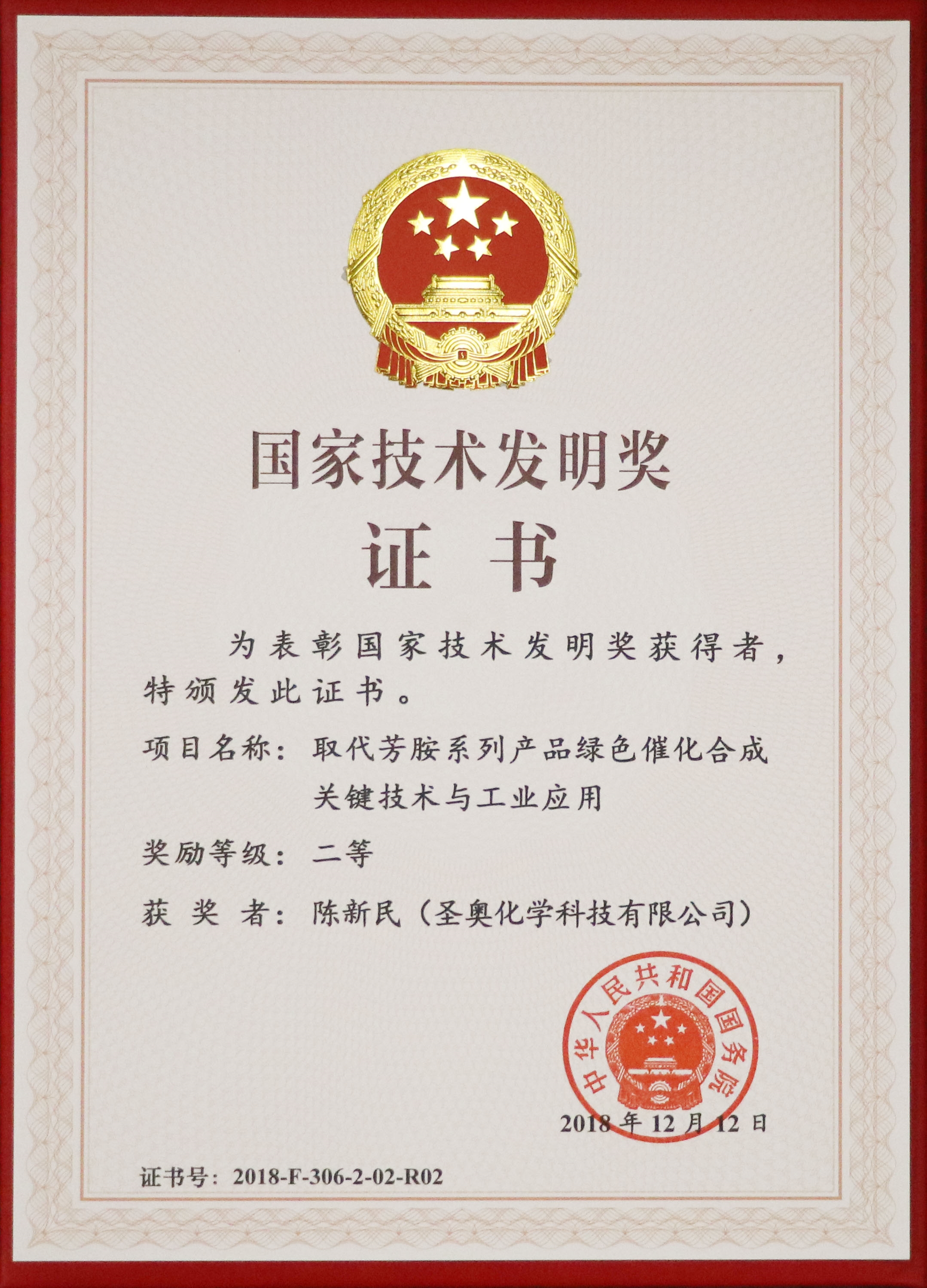 On January 8, the 2018National Science and Technology Awards Conference was held in Beijing Great Hall, to recognize the scientific and technological personnel and organizations who have made outstanding contributions to China's scientific and technological progress, economic and social development, and national defense modernization. The "key technology and industrial application of green catalytic synthesis for substituted aromatic amine series of products" project, co-completed by Sennics, won the second prize of National Award for Technological Invention in 2018.