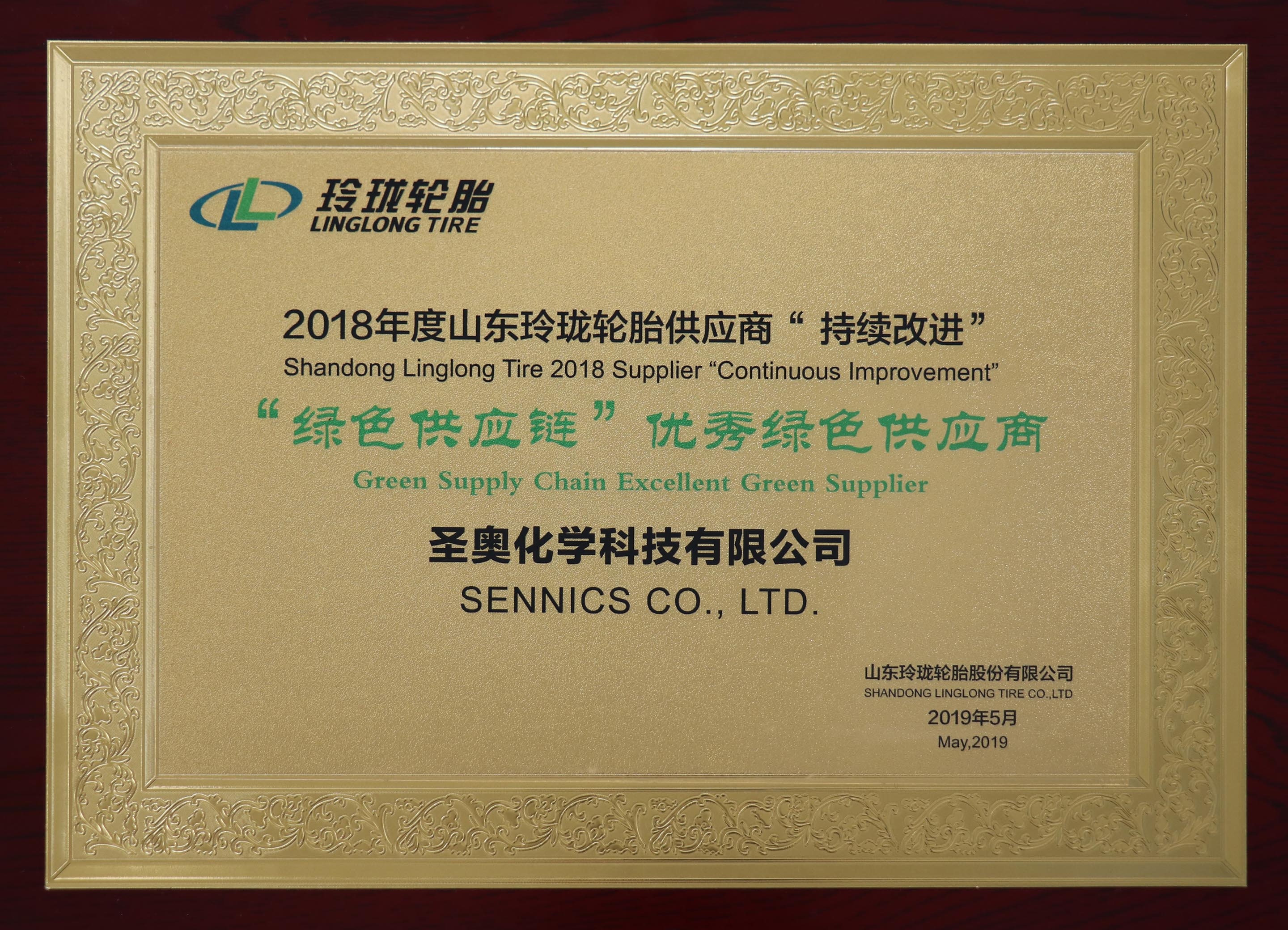 Sennics has become one of the three excellent suppliers who won the title of "Green Supply Chain, Excellent Green Supplier" from Linglong Tires in 2018.