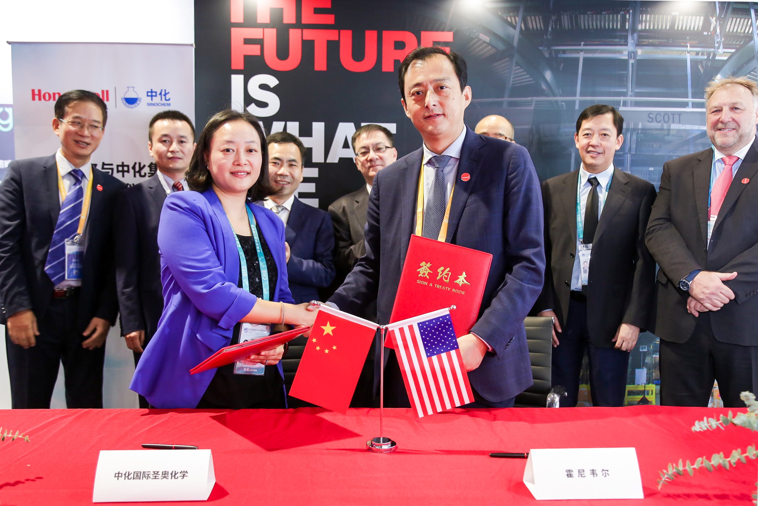 The signing of the MoU coincided with the attendance of Sinochem Chairman Frank Ning at the 2nd CIIE. Chairman Ning also visited Honeywell's booth, to get detailed information about Honeywell's products, and to listen to the report from the Sinochem Group's member companies about joining hands with Honeywell to drive their digital transformation.
