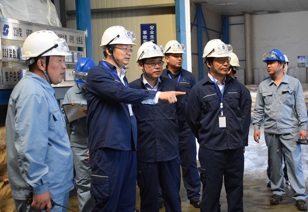 Li and his entourage entered the production area to look over the finished product workshop, the laboratory, the product storeroom and the central control room, and kindly communicated with the frontline staff about their work and life. In addition, Li heard reports on the HSE work, Party building and discipline inspection and supervision work, technologies and innovative management, production and operation management, and quality management made by the competent personnel of Sinorgchem Co., Tai'an. He fully affirmed Sinorgchem Co., Tai'an's work in various aspects. He said that the company adopts delicate and effective management and has promote various systems, processes and standards to all aspects in production and management with DuPont Safety Management as the acting point. Specifically, the company's studies on the theoretical and practical issues of Party building and "one branch, one brand" activity had their own focuses and characteristics, including paying attention to team building, corporate culture development and employee care. This could help the company achieve innovation, promote efficiency, save energy, reduce consumption, and improve management, thus to increase its centripetal force and cohesion.